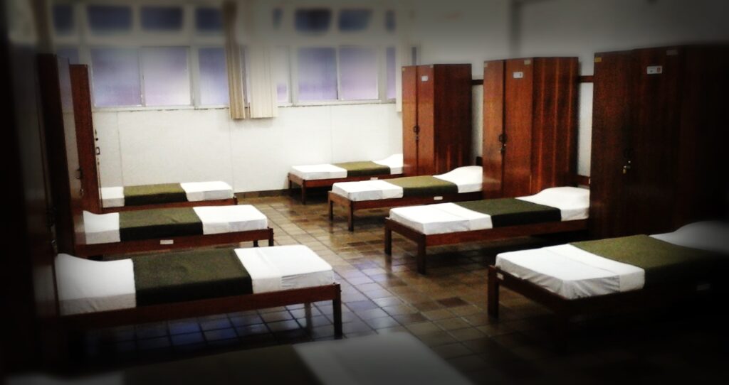 Pisos, beliches, colchões, paredes e armários, nada nas nossas instalações era novo. Eram peças antigas, já desgastadas pelo uso, mas particularmente bem cuidadas.